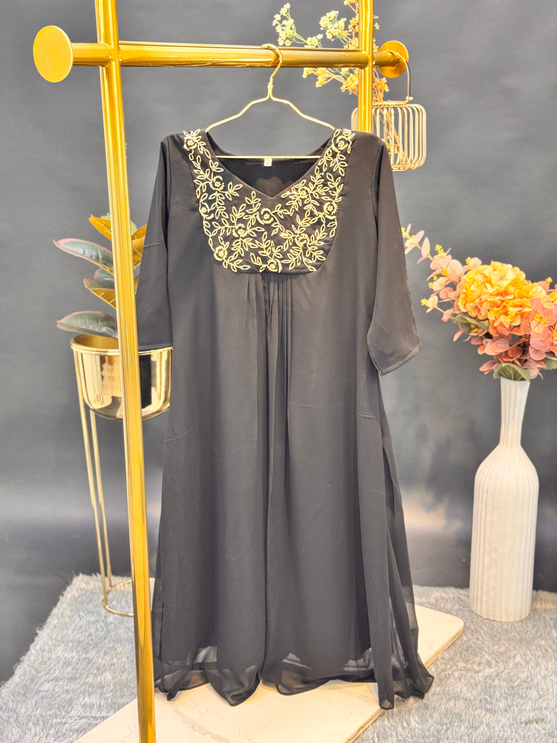 Grace meets elegance in this Embroidered A-Line Georgette Kurti, designed for effortless sophistication. Crafted from lightweight georgette fabric, this kurti features a flattering A-line silhouette that drapes beautifully for a flowy, graceful look.